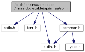 This file defines the spi interface for libmraa. A Spi object in libmraa represents a spidev device. Linux spidev devices are created per spi bus and every chip select available on that bus has another spidev 'file'. A lot more information on spidev devices is available here.