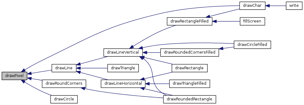 | void | drawPixel (int8_t x, int8_t y, uint8_t color=COLOR_WHITE) |