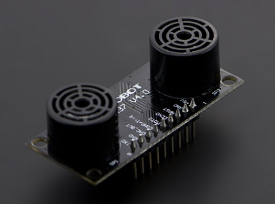 This library was tested with the DFRobot URM37 Ultrasonic Ranger, V4. It has a range of between 5 and 500 centimeters (cm). It supports both analog distance measurement, and UART based temperature and distance measurements. This driver does not support PWM measurement mode.